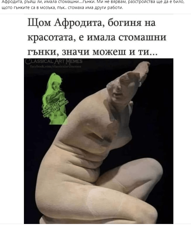 Продължавам нататък с 2-ра част от упътванията как да (не) превеждаме като ИИ. За всички, които си мислят, че преводът е лесна работа, за която се изисква да знаеш чудесно езика, от който превеждаш, мога да дам един от любимите си примери, шестващи надлъж и шир из ФБ: „Щом Афродита, богинята на красотата е имала стомашни гънки, значи можеш и ти!“. За стомашните гънки не съм сигурна, обаче е задължително да имаш мозъчни такива, ако тръгнеш да разпространяваш многоезичните си познания из необятния виртуал.