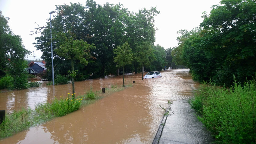 It started raining on Monday. On the third day, very heavily. While I was at work we went to check if there were any signs of leaks on the walls, that sort of things, standard during rain. Driving home from the big city was unusually slow, but that’s not news to Germans used to traffic jams. Later I had to “swim” the car across a pond that was spreading out in the middle of the road, thankfully it did a decent job. All the time I shuddered at the memory of my experiences with a red Fiesta, which in similar situations unfailingly abandoned me. My current car, however, did not fail.